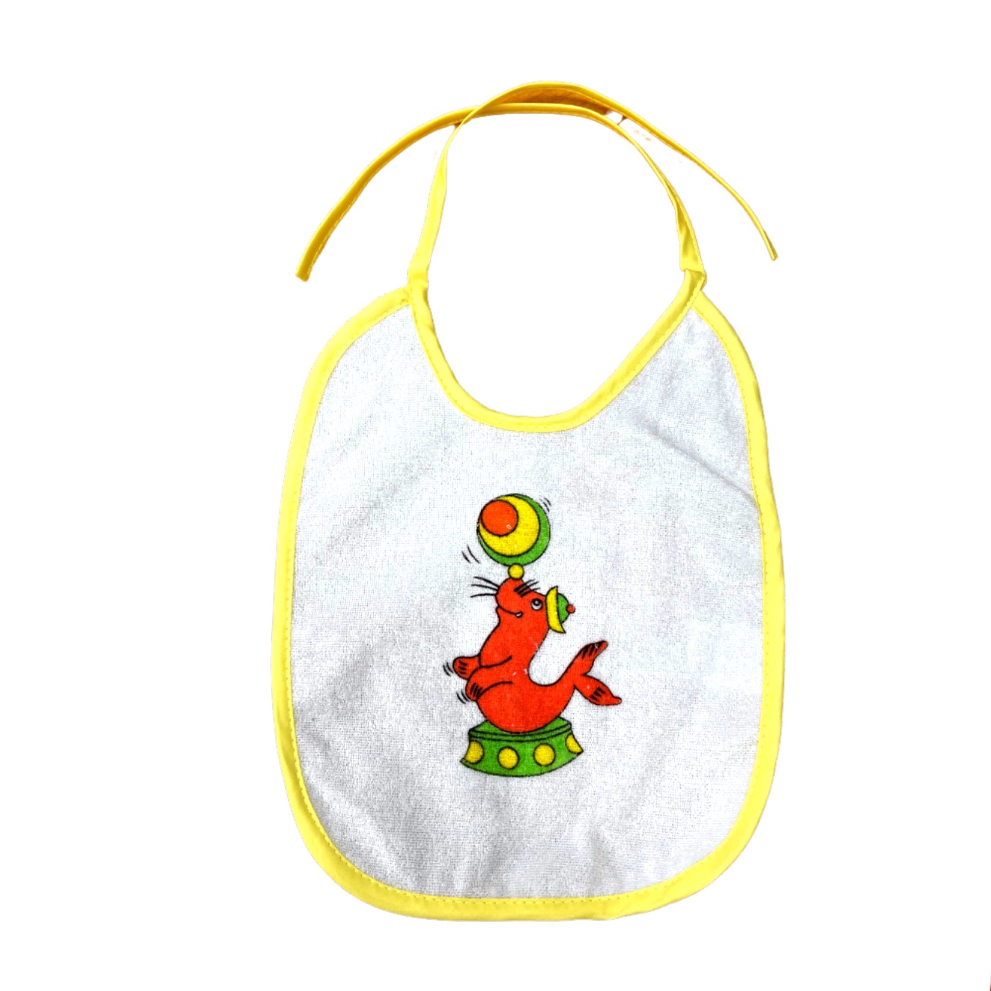 Bibs are an essential part of a baby's accessory kit which is used at the time of feeding. These printed elegant bibs are made of cotton terry toweling with a nylon water-resistant backing to keep babies dry. the closure mode is lacing to hold them in place