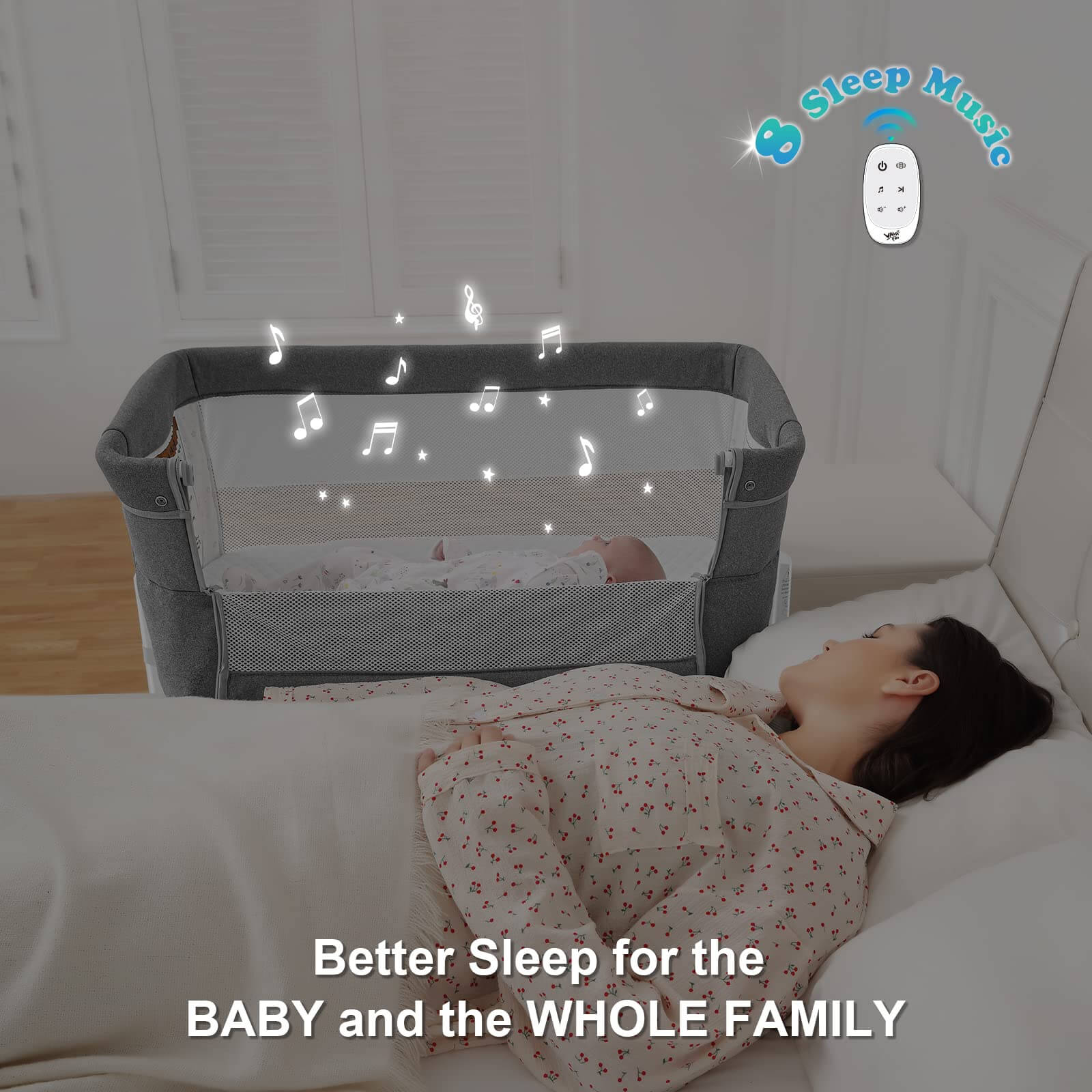 - SMART SLEEP BASSINET: VaVaSoo electric bassinet features 2 automatic rocking motions, 5 soothing music and 3 natural sounds. It's a bassinet that rocks itself, freeing your hands and soothing your baby to sleep faster and longer.