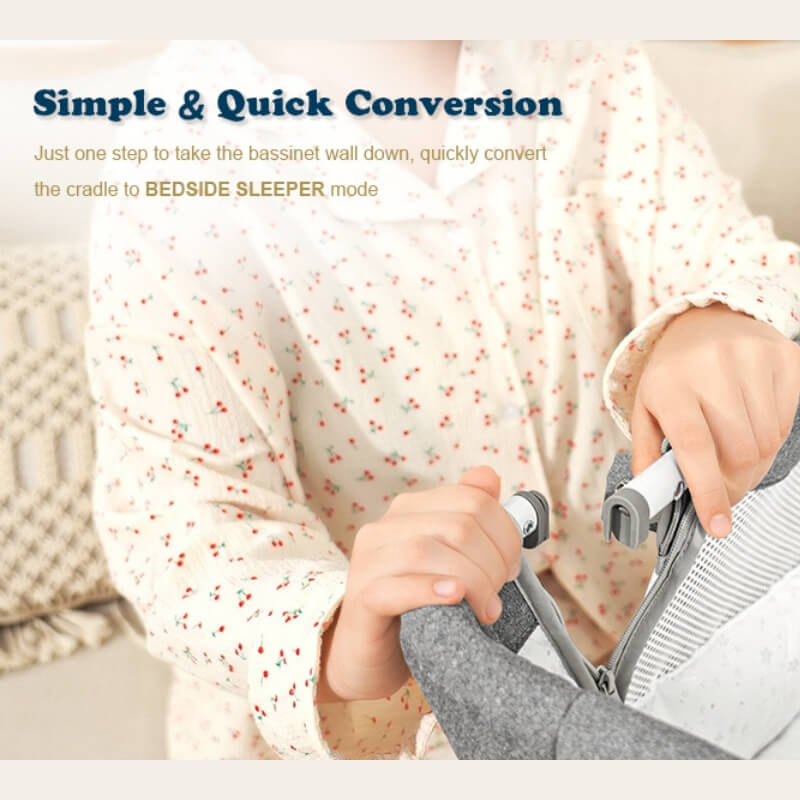 - BEDSIDE SLEEPER: Easily convert it to bedside baby bassinet by removing the side guardrail and placing it next to or over your bed. This enables you to rest with baby by your side, change diaper or feed your baby without leaving bed in the middle of the night.
