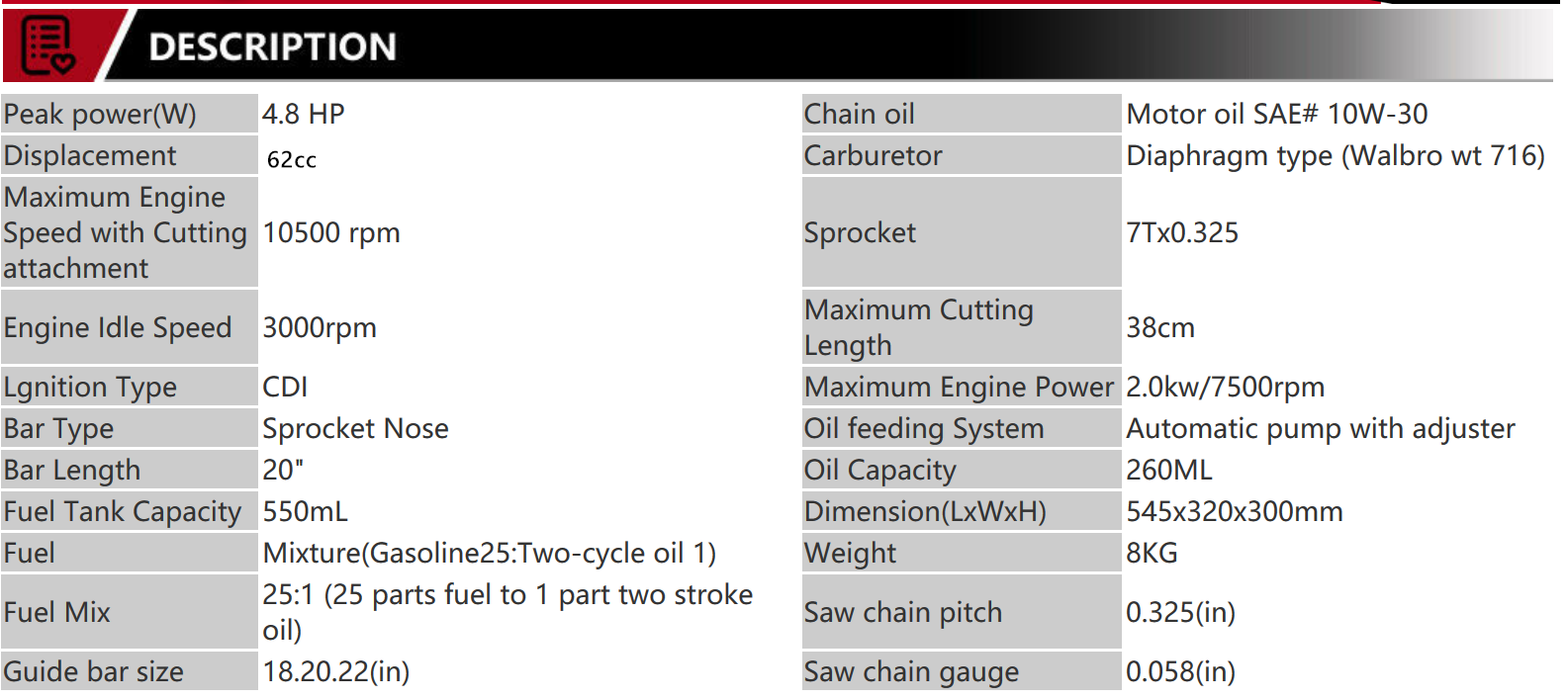 X-BULL 62cc Petrol Chainsaw 20"Bar E-Start Pruning Red Chain Saw 2 Stroke